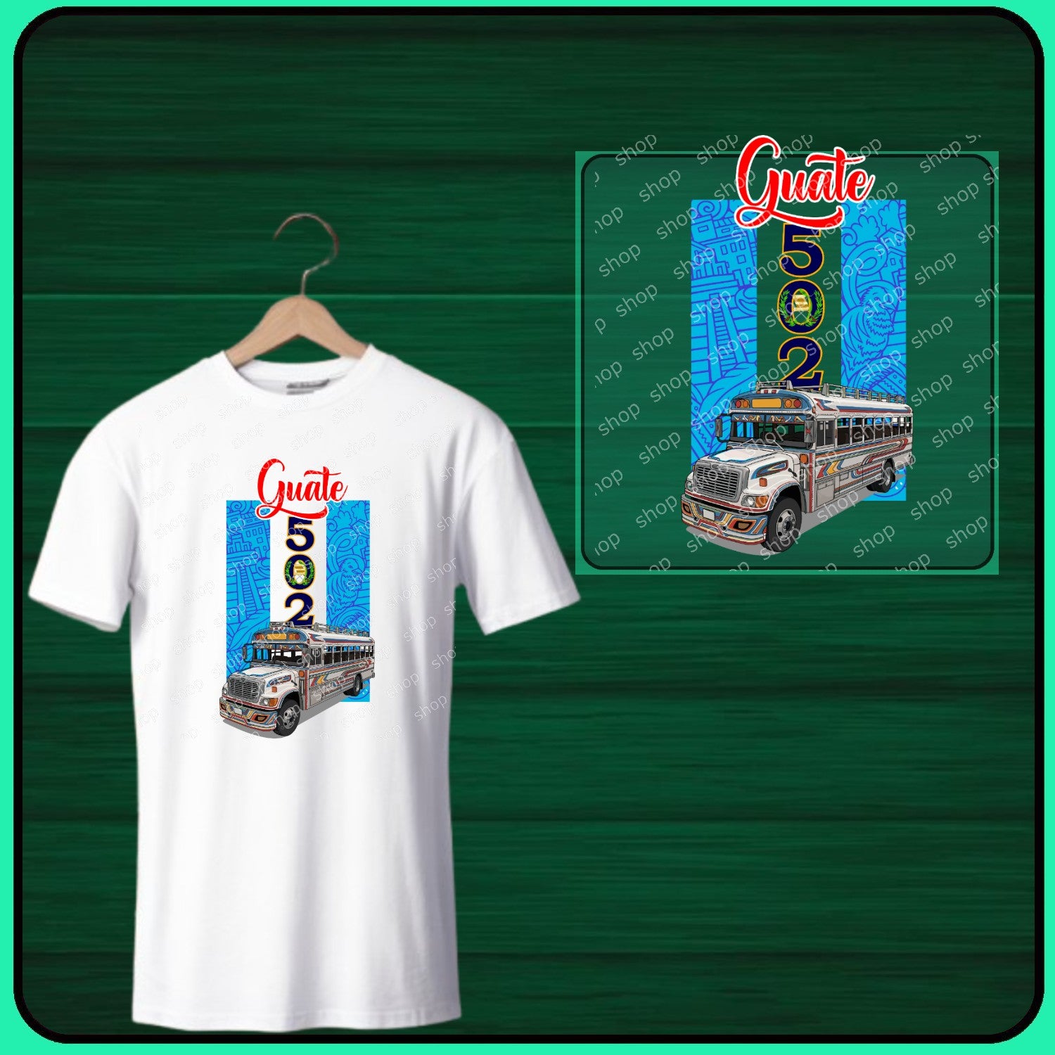 “Diseño DTF de 9x9 INCH inspirado en los buses típicos de Guatemala, ícono cultural que refleja la alegría y colorido del país. Disponible en distintos tamaños; si lo deseas más pequeño o más grande, comunícate con nosotros.”